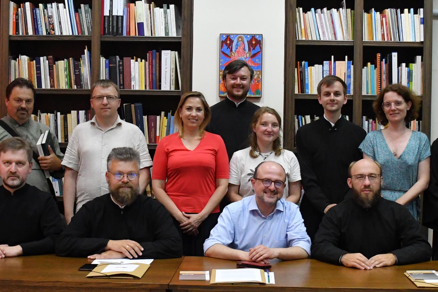 [Visual: Nelia Titova amidst the scholars at Volos Academy for Theological Studies.]